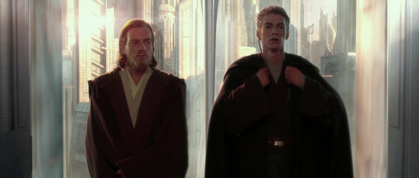 C’est également avec ce second volet que l’on peut clairement s’apercevoir des liens et clins d’œil établis avec la trilogie originale ! Le connaisseur de la saga reconnaîtra alors certains lieux et personnages faisant directement écho aux premiers films. Georges Lucas se permet également d’accentuer l’ironie dramatique de cette histoire : le spectateur est au courant d’éléments scénaristiques que les personnages ignorent. Cette connaissance rend certaines scènes encore plus tragiques et essentielles à l’histoire de la saga ! Ce procédé concerne davantage le personnage d’Anakin Skywalker qui, contrairement à l’épisode précédent, est le centre de l’histoire.