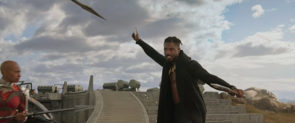 Erik Killmonger justement. Sa famille et lui étaient au service de Ulysses Klaw (Andy Serkis) au Wakanda alors qu’il n’était encore qu’un jeune garçon. Après la débâcle de Klaw, la famille s’exila à Harlem. Depuis cela, Erik Killmonger ne cessa d’en vouloir à Klaw, mais aussi à Black Panther quitte à tenter désespérément de le détrôner. Dans la bande-annonce, c’est lui et ses associés qui libèrent Klaw de sa détention (il porte un masque tribal). Dans le film, il se servira ensuite de Klaw pour parvenir à ses fins… Disney décrit le personnage tel « un puissant guerrier et fin stratège politique et économique ».