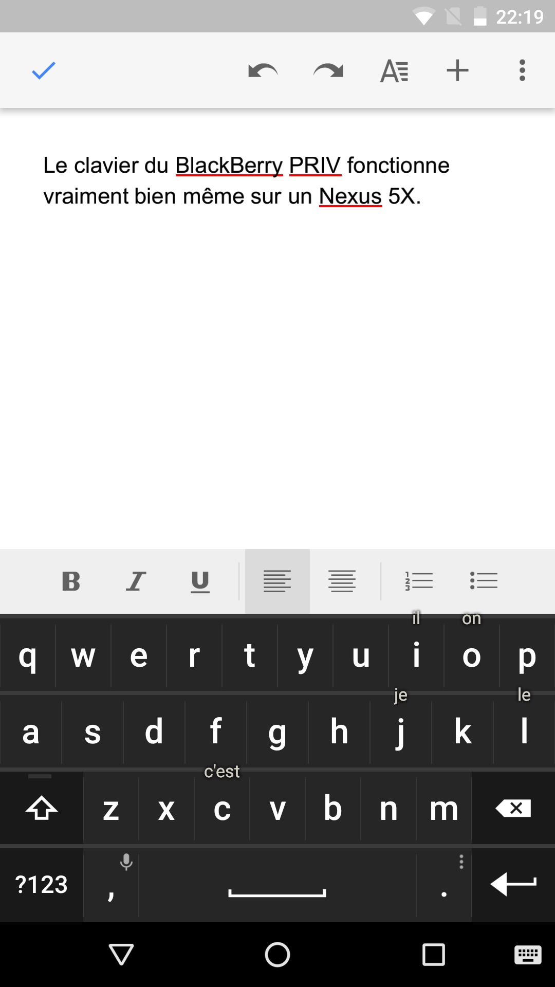 Le clavier, le lanceur d’applications et le calendrier fonctionnent parfaitement sur un appareil sous Android 5.x, mais rencontrent quelques plantages sous Marshmallow. Sur un Note 5, aucun ralentissement n’a été constaté et même si le lanceur de BlackBerry ressemble beaucoup à celui de Google, c’est réellement le clavier qui est le plus intéressant dans cette fuite, permettant une correction d’orthographe très efficace et de glisser les mots vers le haut pour les valider.