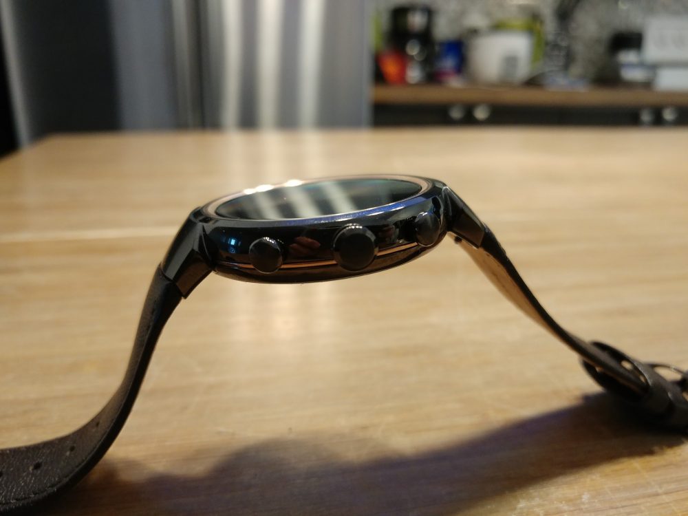 Pour finir, on ne peut parler de la ZenWatch 3 sans mentionner ses 3 boutons physiques. On reviendra sur leur fonctionnement par la suite, cependant leur présence vient conforter l’impression d’être face à une montre classique plutôt qu’un produit technologique. Il s’agit cependant une fois de plus d’une question de goût, et certains n’apprécieront pas.