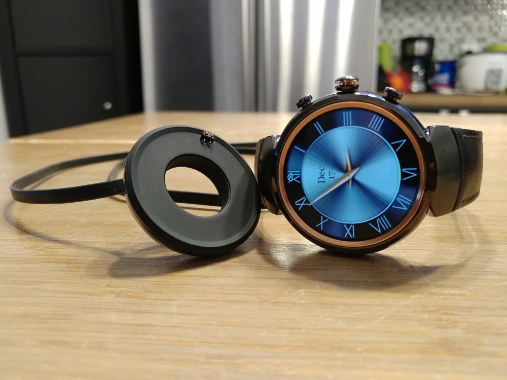 À noter que le mécanisme de chargement de la ZenWatch3 est plutôt bien pensé, puisque le socle est aimanté, ce qui permet de facilement aligner la montre avec son connecteur. On aurait préféré du chargement sans fil, risquant moins d’abimer les parties mécaniques, mais après quelques semaines d’utilisation, tout fonctionne sans aucun problème à ce niveau.