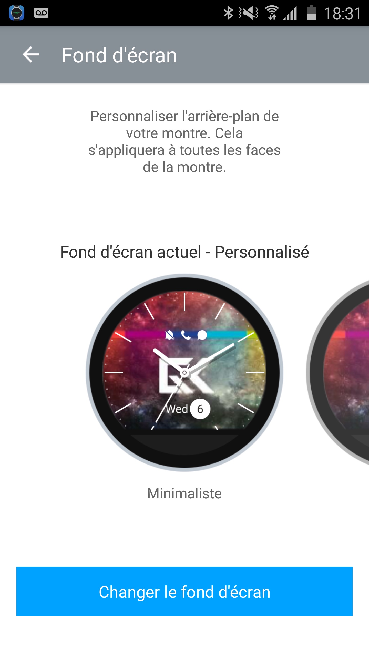 Au-delà de l’initialisation, l’application permet également d’accéder aux réglages avancés de la montre. Il est ainsi possible de personnaliser plus en détails le cadran, en choisissant par exemple un fond d’écran dans la galerie de l’appareil, ou encore de choisir quelles notifications seront affichées ou non à l’écran.