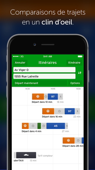 Une application qui permet de voir rapidement toutes les options de transport (métro, train, autobus) disponibles autour de vous ainsi que l’horaire des prochains départs. Aussi, elle est pratique pour repérer une station de vélo libre-service, commander un taxi Uber, trouver une voiture Car2Go ou même un café avec Wi-Fi, si vous avez besoin de prendre un moment pour étudier. Gratuit pour iOS et Android.