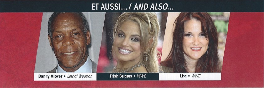 Enfin, on retrouvera cette année encore des personnalités du monde de la lutte avec deux anciennes lutteuses professionnelles intronisées au Temple de la renommée de la WWE : Trish Stratus, femme la plus titrée de la WWE, et Lita.