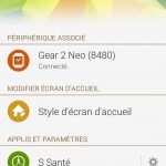 La Samsung Gear 2 Neo utilise le Bluetooth 4.0 Low Energy, la dernière version de la norme. L’avantage est que, contrairement au moment de la sortie de la première montre de Samsung, beaucoup plus d’appareils sont compatibles avec cette norme. Tous les derniers modèles de Samsung l’intègrent et on peut remonter jusqu’au Samsung Galaxy S3, sorti il y a déjà un peu plus de deux ans.