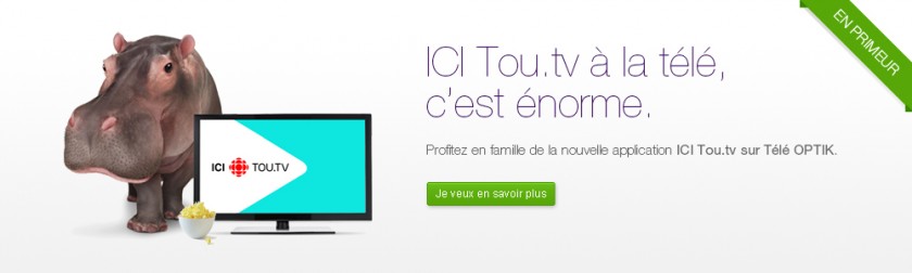 À noter que si la version enrichie d’ICI Tou.tv n’est pas encore disponible, elle sera offerte sur Télé OPTIK au cours des prochains mois. Présentée en mars, l’offre Extra d‘ICI Tou.tv permet notamment d’accéder à 400 titres supplémentaires (film ou épisode de série) par rapport à l’offre de base en contenus vidéo actuelle ainsi qu’une qualité de vidéo en Haute Définition (HD). Disponible en version payante, cette offre enrichie est déjà disponible gratuitement pour les clients de TELUS et Rogers à travers l’application mobile ou le site Web.