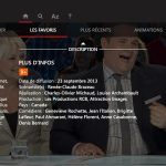 Si nous n’avons pas eu l’occasion de prendre en main l’application et de voir l’intégration avec le système de Télé Optik, voici quelques captures d’écran du service. On peut voir une interface agréable et qui semble bien adaptée à la télévision, mais il faudra voir l’ergonomie avec la navigation par la télécommande pour vraiment juger.