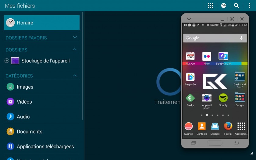 Enfin, si vous avez également un Samsung Galaxy S5, vous avez également la possibilité de le connecter à votre tablette pour voir son écran et interagir directement. Vous pouvez d’ailleurs directement écrire des SMS ou des appels.