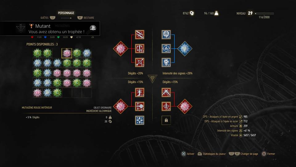 Interface et gestion du personnages dans The Witcher 3 : Wild Hunt