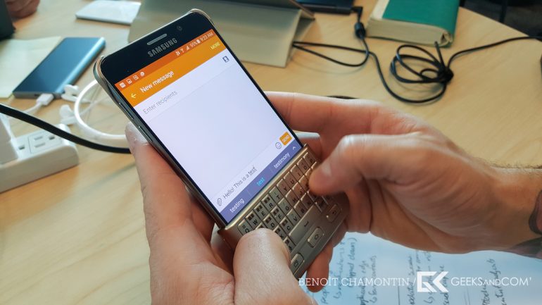 Nous devrions avoir dans les prochains jours un exemplaire pour une longue période, ce qui nous permettra de vous proposer un test plus détaillé du clavier physique et voir mieux comment cela s’intègre en usage quotidien de son Samsung Galaxy S6 edge+ et Note 5.