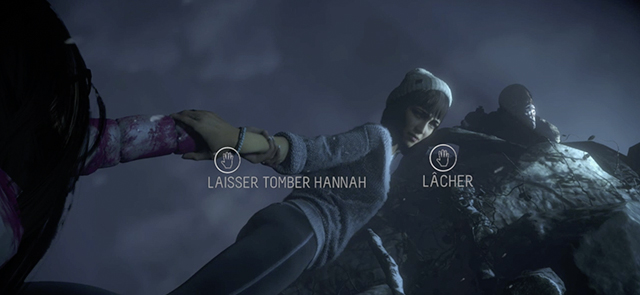 Ces totems, répartis en plusieurs sections et sur l’ensemble de l’aventure, vous montreront un futur possible. Ils peuvent montrer la mort, un instant précis, un choix à venir. Et s’ils ont d’abord l’air de spoiler, on se rend compte rapidement qu’ils participent grandement au stress procuré par les choix à faire. N’étant que du domaine du « possible », les totems mettent le joueurs dans un situation inconfortable puisque même un choix apparemment positif peut avoir des conséquences désastreuses.