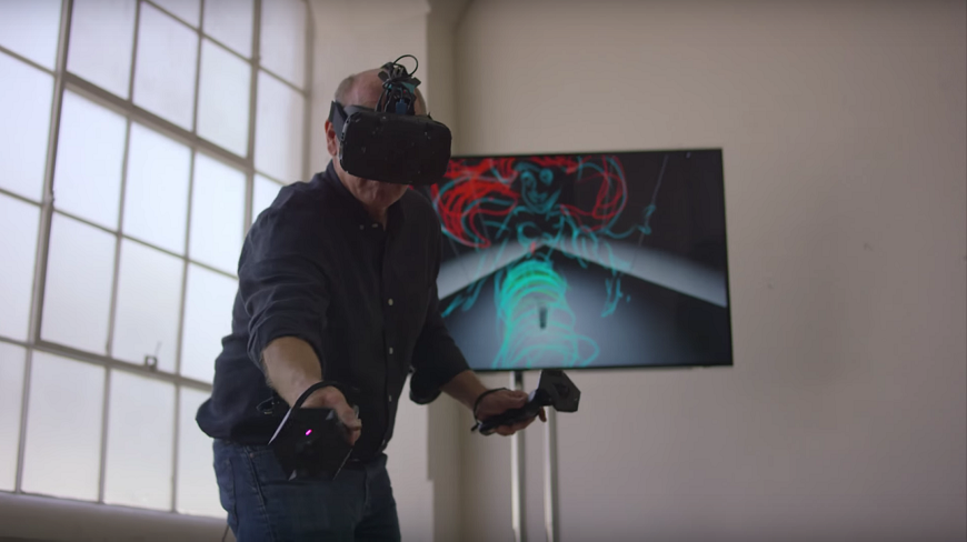 Car oui, ce n’est pas une mais quatre démos auxquelles on a eu droit lors de cette présentation du HTC Vive. Dans la première démo, nous nous trouvions au fond de l’océan sur le pont de l’épave d’un navire. Autour de nous, des poissons, des raies, et divers petits éléments marins. La voix de la démonstratrice, qui nous guide via le casque, nous invite à nous promener librement dans la pièce (et donc sur le pont), les limites de celle-ci étant matérialisée par une grille qui apparaît lorsqu’on l’atteint. On peut regarder par dessus bord et voir le fond, et observer une énorme baleine bleue passer devant soi. L’effet est saisissant et on oublie vite qu’on se trouve dans une petite pièce.