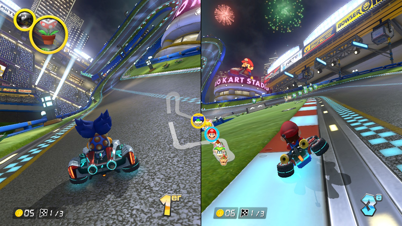 Malgré cette bonne vague de nouveauté, les joueurs qui auront déjà joué à l’opus précédent sur Wii U auront possiblement un sentiment de déjà vu. Certes, on y retrouve une meilleure stabilité et des nouveautés du mode bataille qui sont les bienvenus, mais on aurait peut-être voulu quelques courses supplémentaires ou même certaines corrections d’options. En exemple, le simple fait de revenir en arrière lorsque vous êtes avancé dans les menus fera annuler vos choix et revenir à la case départ. Il sera aussi important de passer par toutes les vitesses de toutes les coupes (bonjour à la durée de vie cependant) afin de compléter le jeu, mais c’était génial qu’elles soient toutes débloquées d’ambler. La complétion des coupes moins rapide lorsqu’on complète une coupe plus rapide aurait peut-être été la bienvenue, surtout pour ceux qui l’ont fait sur la Wii U.