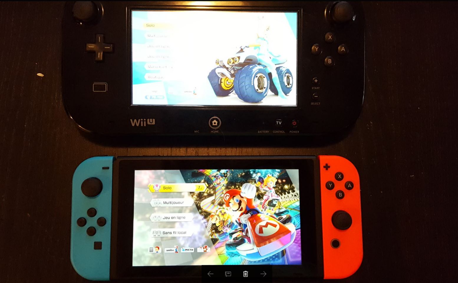 Si l’on se transporte sur le format tablette, le son est suffisamment puissant pour bien nous faire vivre le son des courses. Il est certain que ce ne sera pas idéal de jouer à quatre personnes en mode tablette, mais je suis quand même surpris de la qualité qu’elle donne si l’on joue à 2 personnes en même temps. Mon petit bémol de la prise en main sous ce format reste la sensation d’avoir les boutons R et L un peu trop haut en comparaison avec mon maniement de la manette. Cela dit, la prise en main à deux joueurs est excellente et malgré le petit format des télécommandes, on se retrouve rapidement considérant le peu de touches à appuyer pour comprendre le jeu.