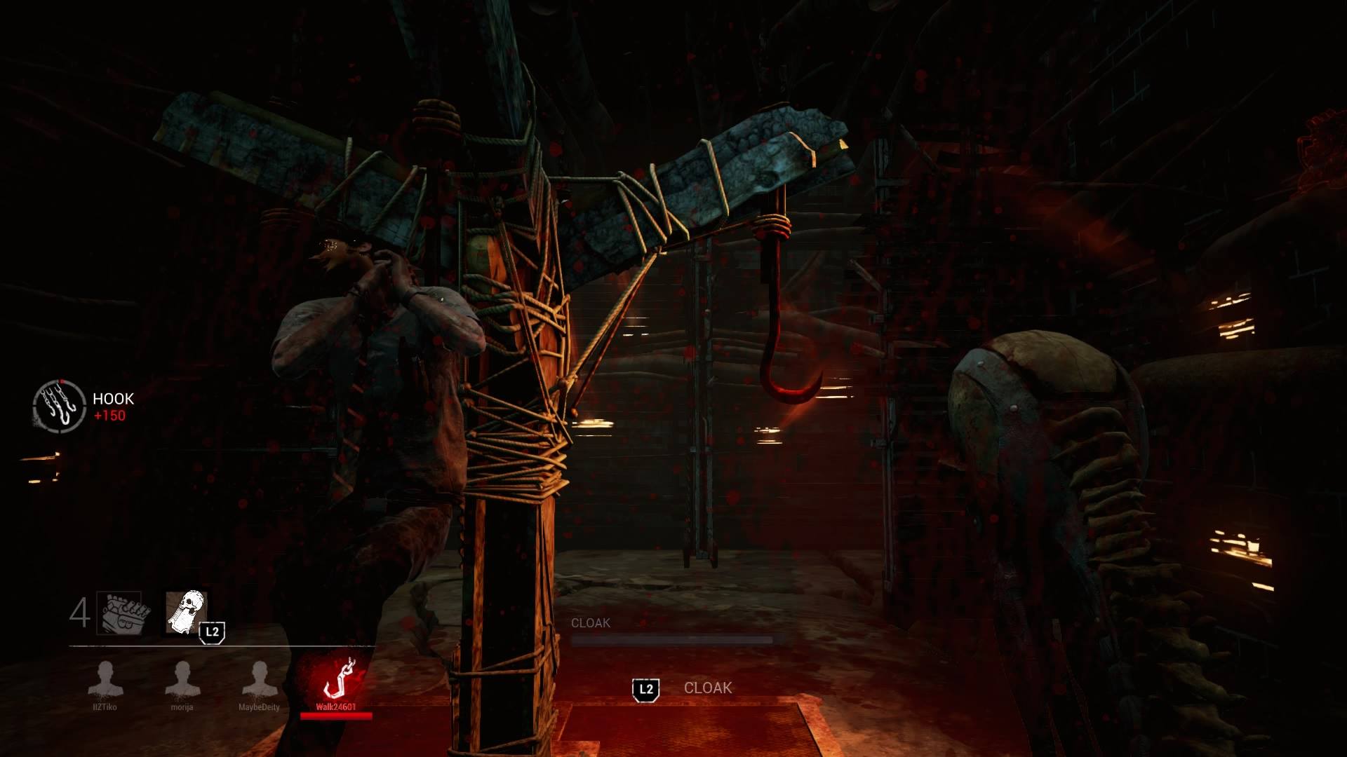Du côté du tueur, votre objectif est simple : attraper et tuer les survivants ! Pour réaliser cela, il faut amener les survivants sur des crochets. Garder l’œil ouvert, car les autres personnages en vie peuvent venir sauver leur compagnon.