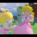 Mario + Rabbids Kingdom Battle propose aussi un scénario mignon plutôt amusant et assez captivant à suivre du début à la fin. Je ne m’attendais pas nécessairement à ça puisque la plupart des jeux de Mario, outre quelques rares exceptions, ont toujours été plutôt limités à ce niveau. Ce qui est surtout intéressant, c’est les nombreuses cinématiques qui mettent bien en évidence les superbes graphismes du jeu qui sont à la hauteur des titres de Nintendo. Grâce à la palette de couleurs très vives, le design très amusant des Lapins Crétins (surtout le Lapin Peach qui est très drôle), et les décors enchanteurs, on peut dire que Mario + Rabbids Kingdom Battle est parfait pour la Nintendo Switch.