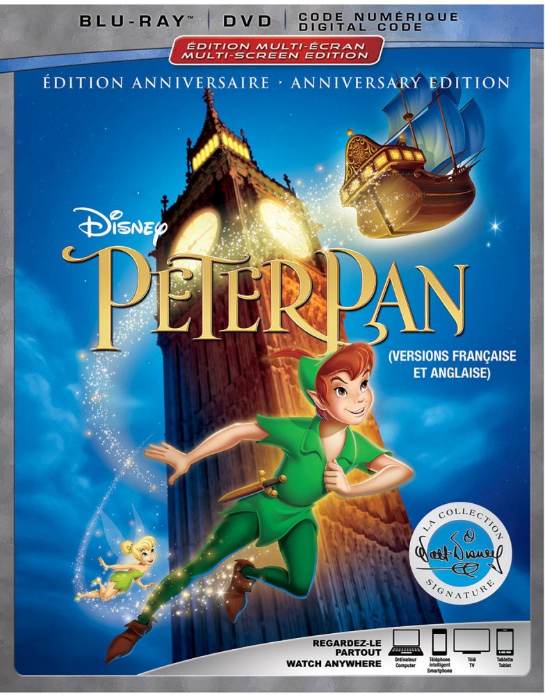 Le Blu-Ray de Peter Pan Édition Anniversaire contient quelques suppléments, un DVD et un code pour la version numérique afin de le regarder sur vos différents appareils.