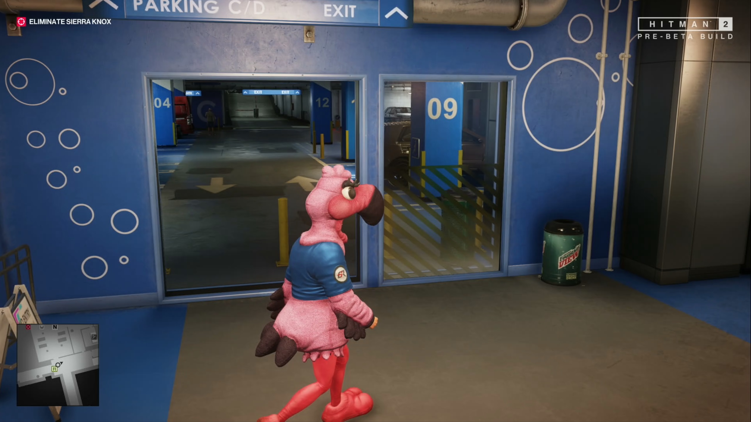 Je disais à l’instant que j’avais dû passer par une tonne de déguisement avant de me rendre à ma victime. Tout a commencé en suivant subtilement une mascotte, un curieux flamand rose, dans le sous-sol de l’événement. Celui-ci était un costume visiblement populaire puisque pratiquement tous les journalistes autour de moi lui avaient piqué.