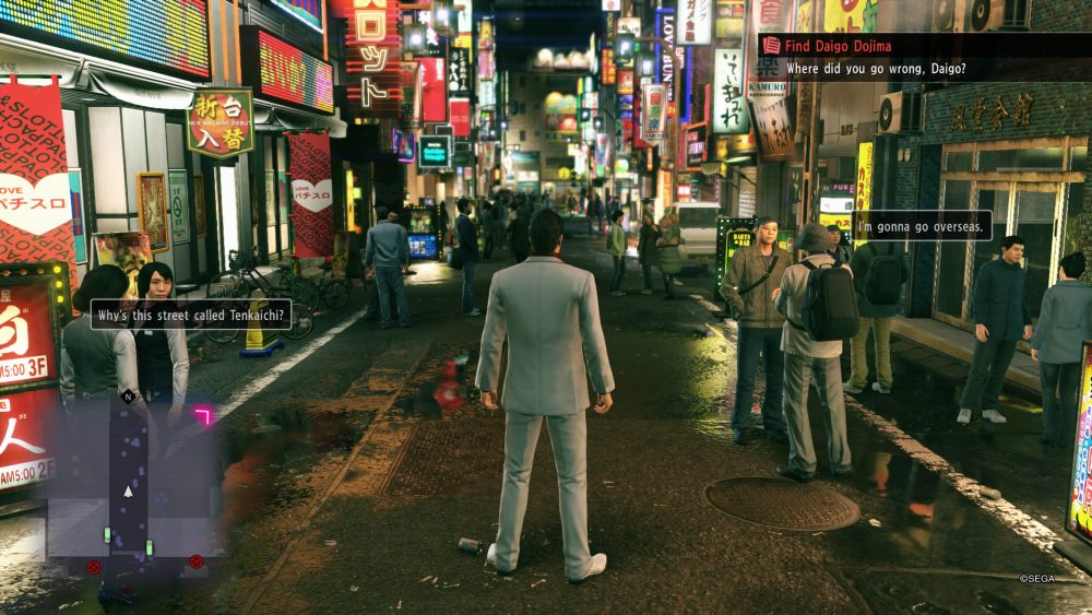 Les quartiers de Kamurocho et de Sotenbori qui se trouvent respectivement à Tokyo et Osaka sont très bien modélisés. On retrouve avec joie l’univers tout en néon de ces quartiers japonais très animés.
