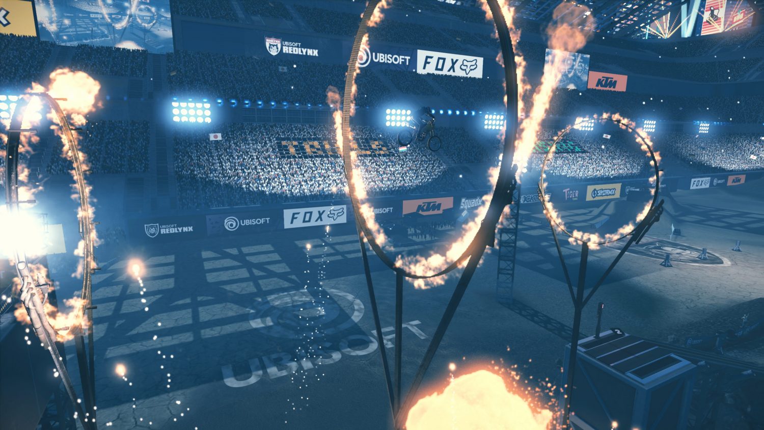 Présent dans certains derniers opus de la franchise, les environnements modifiables sont de retour dans ce Trials Rising. En plus de la difficulté de la piste, le joueur doit focaliser son attention sur le chemin qu’il doit parcourir et éviter de regarder tout ce qui se passe autour de lui. Les décors à l’arrière lors des courses se modifient constamment en plus des explosions et des éléments ajoutés qui modifient la jouabilité. On retrouve notamment des ventilateurs géants qui influencent la direction de votre moto ou encore les plateformes qui propulsent votre joueur très très loin. Tout est en place pour offrir un spectacle de lumière et d’effets réussi. Que l’on y joue ou encore qu’on regarde quelqu’un y jouer, Trials Rising est fort amusant et stimule notre cerveau.