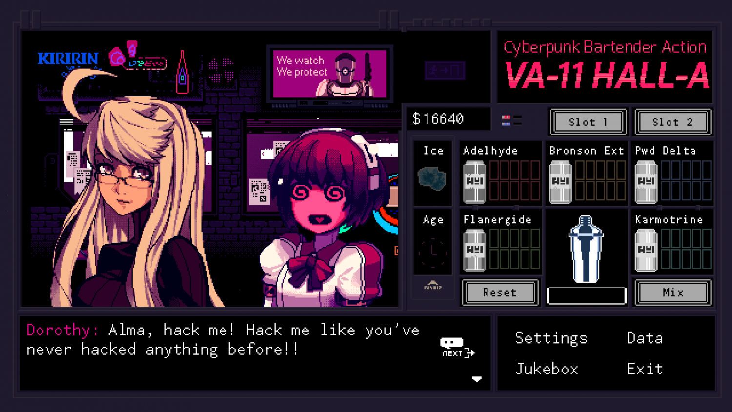 Il faut le dire tout de suite, VA-11 Hall-A : Cyberpunk Bartender Action ne plaira pas à tous. C’est de la lecture la grande majorité du temps. Mais si vous êtes capable de faire abstraction de cela ou si vous aimez la lecture, ce jeu est fait pour vous. L’histoire est intéressante et les personnages amusants. Un des meilleurs jeux sur le marché du genre, rien de moins.