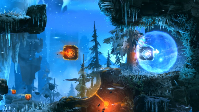 Premièrement, la direction artistique est à couper le souffle. On remarque immédiatement la différence entre les secteurs du jeu. Une couleur bleue est proéminente ici, une noirceur l’est dans ce secteur, une dense forêt nous entoure dans celui-là, bref, c’est majestueux. Cela nous permet donc de découvrir le jeu, peu importe l’endroit où on se retrouve durant les quelques 10 à 12 heures de jeu. Et comme il s’agit de Ori and the Blind Forest version définitive, il contient deux nouveaux secteurs. Nous en avons donc pour encore plus longtemps !