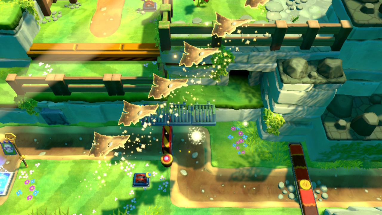 Puis, il y a aussi une panoplie de casse-têtes qui augmentent la difficulté du défi et c’est là que le jeu se démarque. D’abord, chaque tableau cache 5 sous numérotés et ils sont soient très bien cachés ou difficiles à atteindre. À l’instar des lettres KONG de Donkey Kong Country, il s’agit d’un bon challenge qui vient prolonger la durée de vie du titre. En plus, le jeu ne nous pardonne pas vraiment de faux pas. On a souvent besoin d’avoir encore nos deux personnages en vie pour réussir à en atteindre certains alors que d’autres vont nous passer sous les yeux tellement rapidement qu’il faut vite réagir.