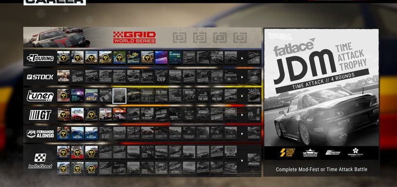 J’ai toujours adoré les modes carrière proposée dans les différents jeux du studio Codemasters. Cependant, je dois admettre que celui offert dans ce GRID manque d’originalité et de profondeur. En effet, il n’y a pratiquement aucune personnalisation et nous sommes rapidement jeter dans la gueule du loup à devoir enchaîner les courses pour accéder à des catégories supérieures. Outre le fait de terminer premier et de remporter les Championnats du monde, le mode carrière de GRID ressemble plus à une succession de courses plutôt qu’à une carrière complète et intéressante sur le fond. Même si j’ai compris que le but était de proposer une expérience simple et accessible, il faut penser aux autres joueurs qui sont des amateurs de la franchise depuis ses débuts.