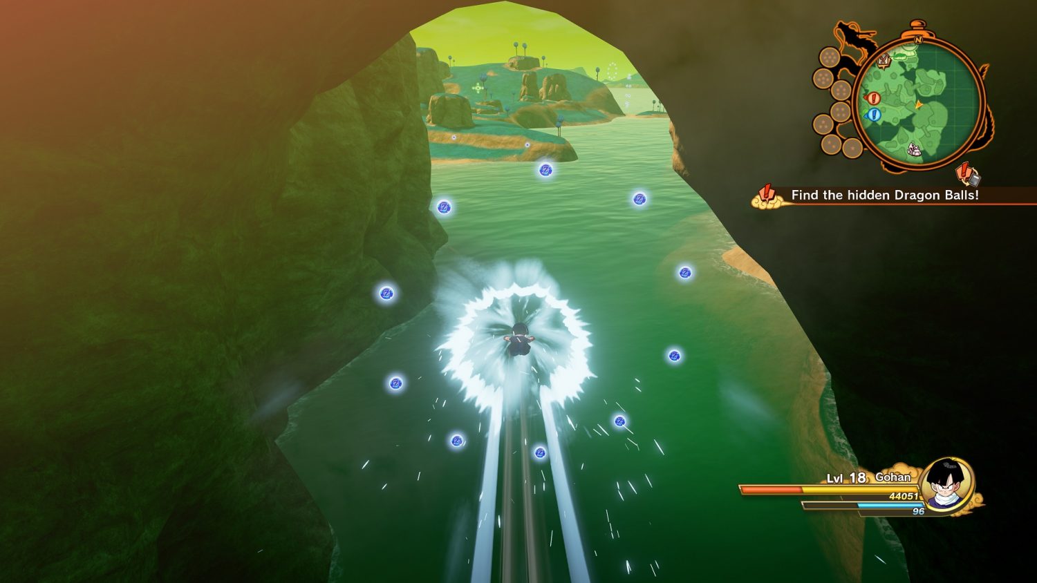 Parce qu’en plus d’être un monde ouvert, Dragon Ball Z: Kakarot mélange beaucoup d’éléments de RPG. Entre deux missions, on passe la plupart de notre temps à survoler les différentes régions pour accumuler les éléments qui vont nous améliorer. En commençant par les Orbes Z qui flottent un peu partout dans l’univers. Celles-ci sont primordiales pour débloquer les cases des arbres de talents de nos personnages et ainsi améliorer leurs attaques.