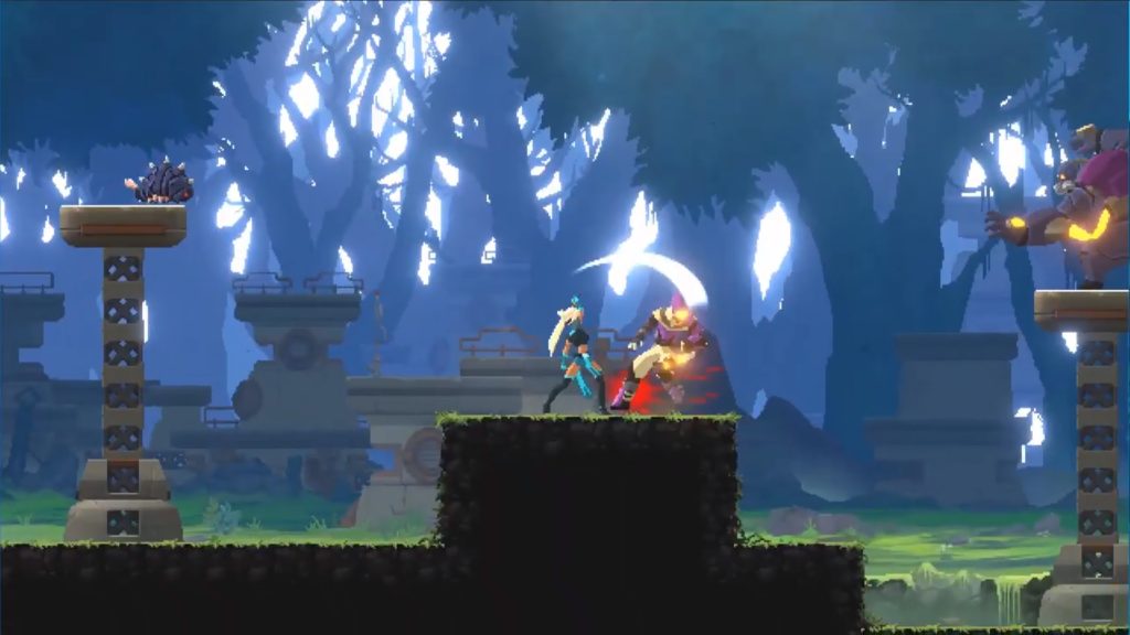 Le premier élément qui frappe lorsque l’on commence une partie de Foregone est la ressemblance avec le connu Dead Cells. Visuellement, nous sommes dans de quoi de très proche, avec des couleurs très criardes. Mais pour notre plus grand bonheur, c’est ici que la ressemblance s’arrête. À partir d’ici, on constate que Foregone réussi à avoir sa propre identité.