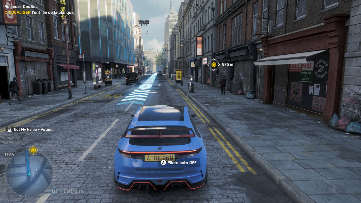 Tel que vous vous en doutez, Watch Dogs Legion est un jeu à monde ouvert dans lequel vous allez devoir utiliser les points de téléportation, représentée par des stations de métro, ou encore les nombreux véhicules terrestres ou marins mit à votre disposition. Si vous avez déjà joué aux précédents opus de la franchise, vous savez que la conduite n’est pas particulièrement idéale et que c’est parfois une vraie tâche de conduire et de se rendre d’un point A au point B. Heureusement cette fois-ci, les développeurs on rectifier le tir, et même si le jeu propose toujours une conduite arcade, il est beaucoup plus agréable de déplacer. De plus, chaque type de voiture a aussi sa propre conduite, par exemple des camions auront plus de difficulté à accélérer et avoir de la difficulté dans les virages tandis que les véhicules sportifs possèdent les plus grandes courbes de vitesse. J’ai particulièrement aimé la conduite même si j’avais espéré un peu plus de réaliste lors des collisions avec l’environnement.
