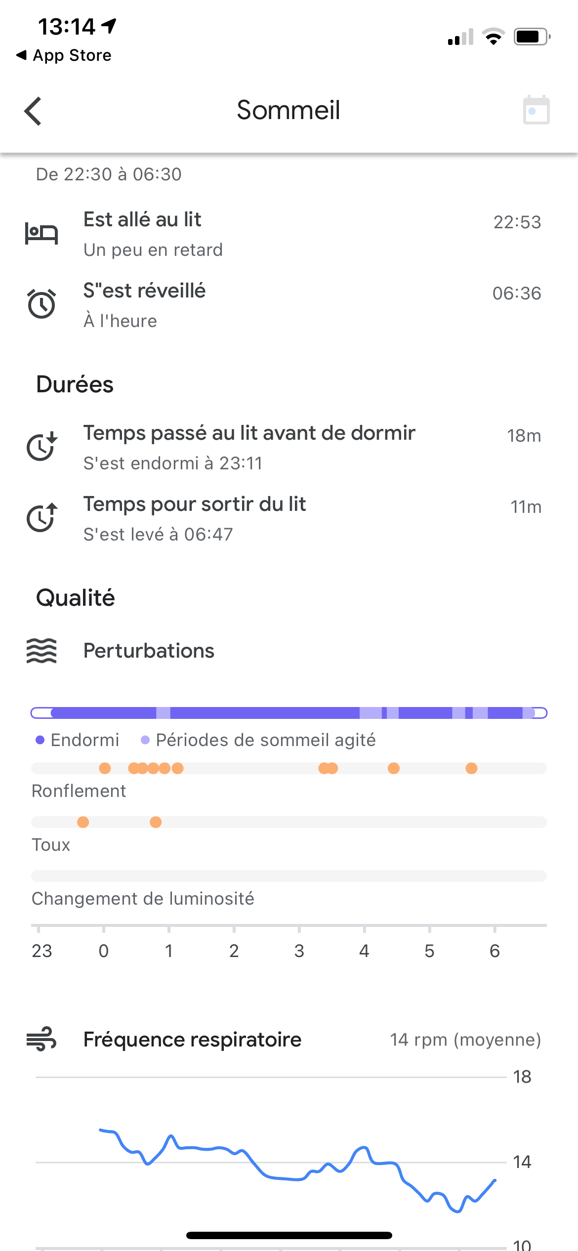 Pour suivre votre sommeil, vous devrez utiliser l’application Google Fit. Aux fins de ce test, je l’ai utilisé pendant une semaine complète. C’est très simple et vous allez être surpris ! Vous pouvez remarquer, sur les images ci-dessous, que je ronfle et que mon sommeil est stable pour un papa de trois enfants.