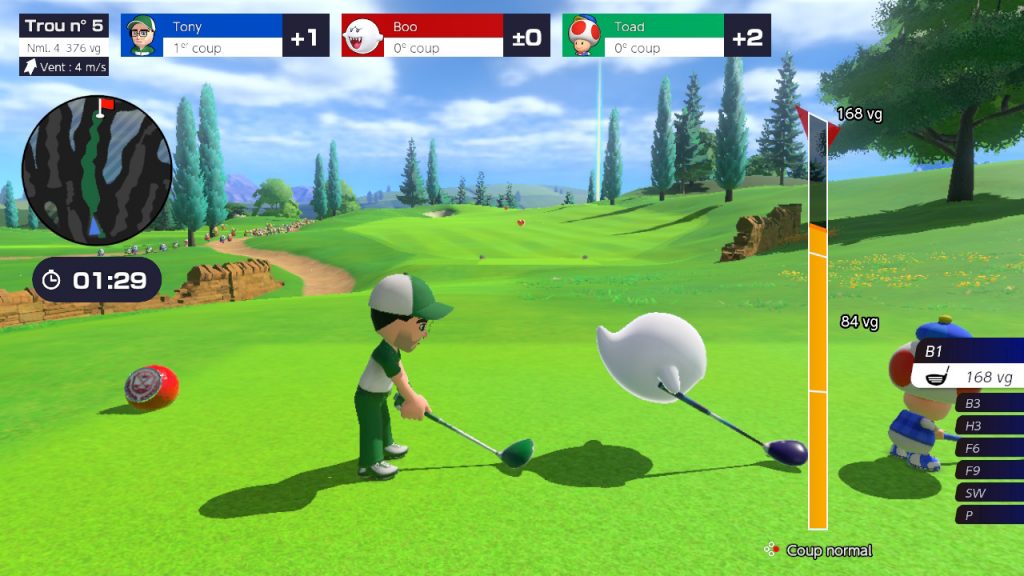 Effectivement, la technologie de vibration dans la manette doublée de celle qui capte notre motion est franchement efficace. Rien ne va remplacer l’effet de tenir un vrai bâton de golf, mais Mario Golf: Super Rush répond vraiment bien à notre élan. Ça prend un bon ajustement, mais c’est rapidement devenu ma méthode préférée de jouer. En plus, les vibrations sont aussi à point puisqu’elles répliquent l’impact de notre bâton avec la balle. Bref, il s’agit d’un autre point qui favorise la jouabilité.