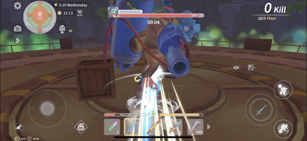 Qui plus est, le jeu a bien exploité le sentiment de progression du joueur. Non seulement on peut voir notre atelier grandir, mais on peut surtout faire progresser notre personnage. Ainsi, peu importe la tâche qu’on accomplit, on gagne des points d’expérience qui augmentent notre niveau. Il n’y a rien qu’on fait qui ne sert à rien. On a même un arbre de talent qui nous permet de personnaliser un peu notre personnage selon nos intérêts. Ainsi, les points de vie et la fortitude du protagoniste progressent constamment. On peut donc combattre des ennemis plus puissants et il y a justement quelques boss assez féroces. Quoique la prise en main des combats, bien que simple, n’est pas la plus facile à contrôler.