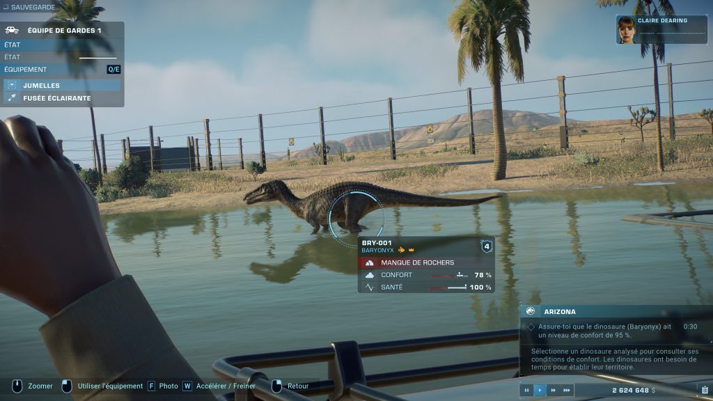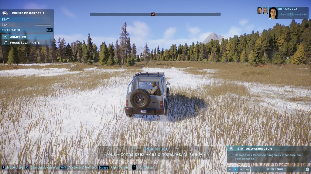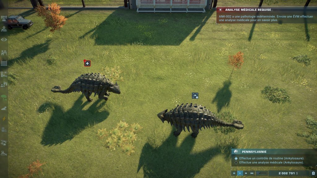 Sur l’aspect visuel, Jurassic World Evolution 2 propose une expérience similaire à son prédécesseur tout en proposant des textures de meilleure qualité. Les environnements lors de la campagne solo sont également bien plus variés ce qui offre parfois de magnifiques points de vue pour vous et vos visiteurs. Les seuls problèmes relevés lors de mon test du titre sont ceux qui concernent les déplacements de vos unités qui entrent très souvent en collision avec les décors sans raison apparente. C’est particulièrement problématique lors des situations d’urgences. J’ai dû à de nombreuses reprises faire pause pour ensuite débloquer manuellement mes unités.