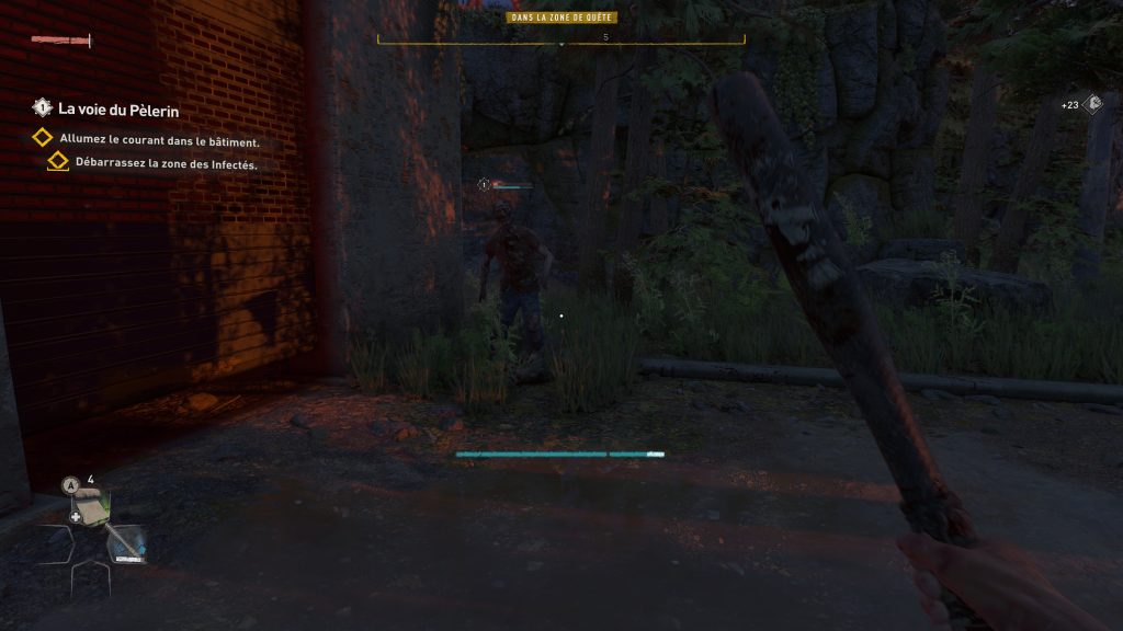 Tout comme son prédécesseur, Dying Light 2: Stay Human intègre un cycle jour/nuit complet qui influence la manière de jouer. En effet, le jour vos ennemis (humains) remarqueront votre présence beaucoup plus rapidement tandis que les zombies restent plutôt calmes et inoffensifs. D’ailleurs ces derniers se cachent à l’ombre dans les bâtiments afin de ne pas être exposés au soleil. Si vous souhaitez explorer les bâtiments, il est conseillé de le faire la nuit, parce que cette fois-ci les créatures sont beaucoup plus nombreuses dans la ville de Villedor. C’est aussi une fois que le soleil est couché que les mutants les plus dangereux sortent et que le système de poursuite entre en jeu. Pour faire simple, si un zombie hurleur vous remarque, il émettra un puissant cri qui avertira tous les monstres aux alentours qui se lanceront à votre poursuite. Pour réussir à vous en sortir, il faut soit vous cacher ou encore vaincre l’ensemble des ennemis. J’ai néanmoins constaté que le titre est un peu plus facile la nuit sans savoir pourquoi. Peut-être afin de permettre à plus de joueurs de terminer le titre.