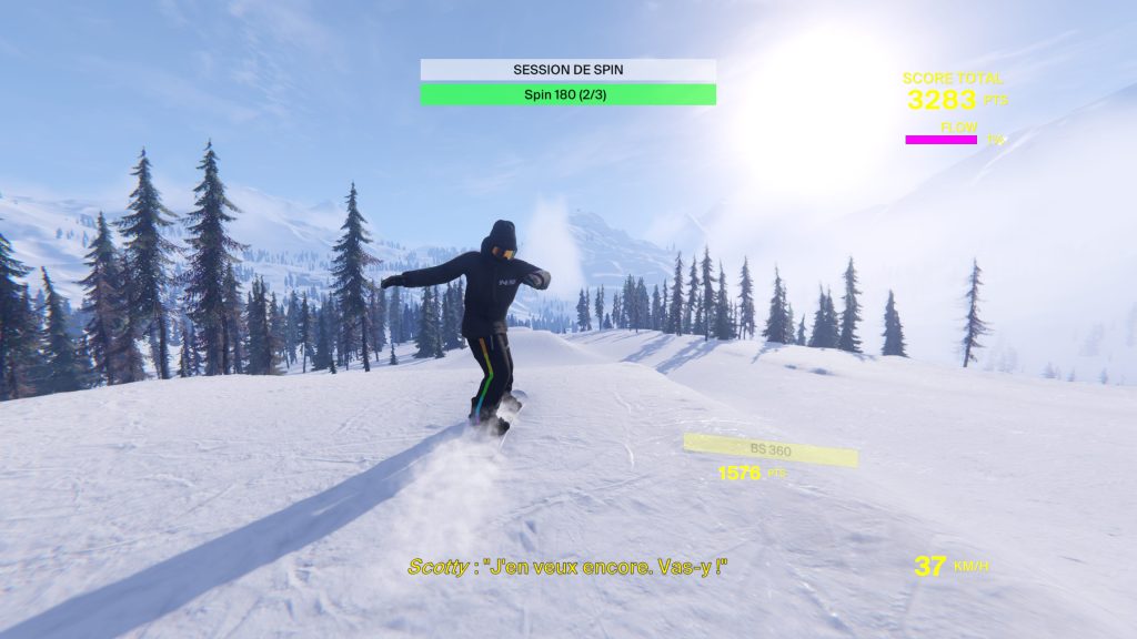 Shredders s’inspire ouvertement des premiers jeux du genre sorti à l’époque sur la toute première Xbox. Malheureusement, la ressemblance est un peu trop présente dans la direction artistique de ce nouveau jeu développé par la petite équipe de FoamPunch. En effet que ce soit au niveau de la musique, des couleurs, de la modélisation ou encore des animations présentes, j’ai vraiment eu l’impression de retourner plusieurs années en arrière. C’est encore plus vrai lorsque l’on constate après les premières missions à quoi ressemble le menu principal dans lequel nous allons devoir naviguer. La sensation de vitesse n’est aussi pas très bien représentée et tout semble un peu mou sur la piste. C’est assez décevant de constater que les textures sont dignes du début des années 2000. Sans nécessairement demander que ce soit le plus beau jeu de l’année, j’aurai au moins espéré que l’identité visuelle du titre ne semble pas avoir été réalisée à la dernière minute.