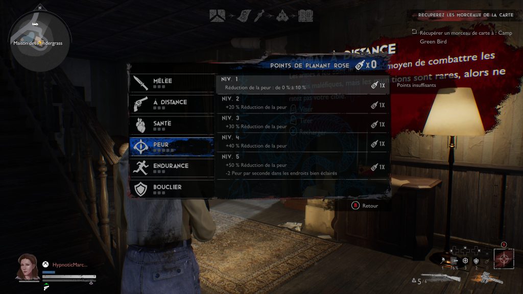 De son côté, l’omniprésence des écritures, des menus avec des caractères beaucoup trop petits réduisent fortement notre immersion dans Evil Dead: The Game. À ce niveau, je comprends l’importance d’offrir un système de progression pour que le joueur reste plus longtemps sur le jeu, mais il faudrait peut-être réfléchir à un système de progression qui récompense réellement nos parties et que les bonus obtenus ont un réel impact sur nos parties. Ce qui n’est pas le cas dans l’état actuel. La progression est beaucoup trop lente et on se lasse rapidement d’enchaîner les parties les une après les autres.
