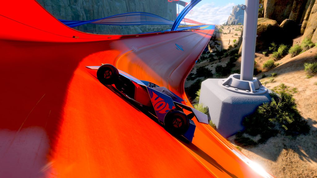 Le tout est relié par plus de 150 routes Hot Wheels afin de créer un terrain de jeu grandeur nature. Le joueur a également la possibilité de sortir de la piste pour explorer plus en profondeur certaines zones. De mon côté, j’aurai préféré un peu plus de liberté, car les endroits pour sortir des pistes sont peu nombreux. Les développeurs ont aussi ajouté des zones magnétiques, des boosts et des loopings pour se rapprocher au maximum de la réalité des jouets produits par la célèbre marque.