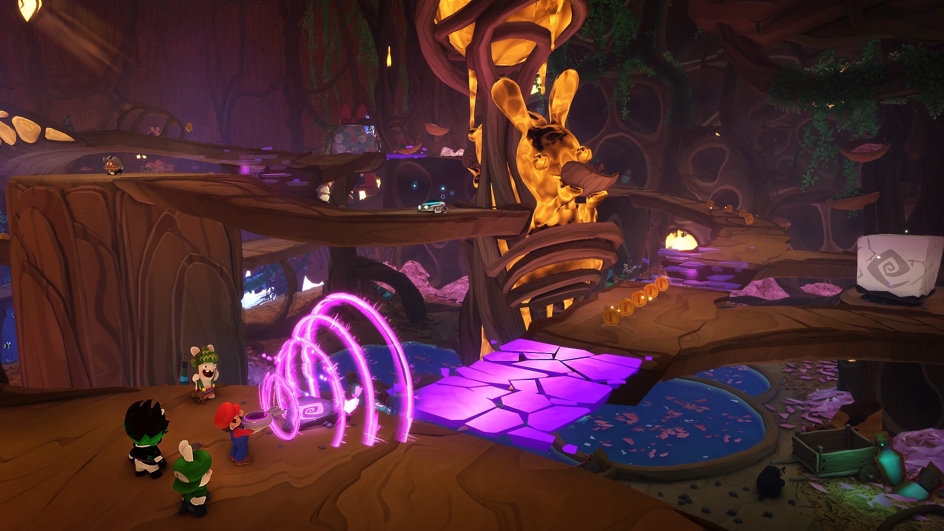 Ubisoft Milan propose un excellent mélange entre les éléments de l’univers Mario et des designs originaux signés les Lapins Crétins. Outre les gardiens dont je vous ai parlé précédemment, les planètes sont aussi très uniques. Comme dans tout bon Mario, chacune possède son propre environnement et les planètes sont assez grandes pour cacher plusieurs secrets. D’autre part, ça se reflète aussi dans la variété de ses arènes de combats. Elles sont toutes différentes ce qui fait en sorte qu’il n’y a pas de stratégie unique gagnante. On a eu droit à quelques bons TRPG dans les dernières années et celui-ci serait assurément dans les tops.