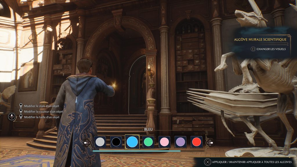 Pour faciliter vos combats si nécessaires, les développeurs ont aussi introduit bon nombre de potion et plantes de l’univers original. Hogwarts Legacy : L’Héritage de Poudlard propose, donc, des potions de soins, mais aussi des améliorations temporaires permettant d’offrir un peu plus de facilité dans nos combats. Si on peut obtenir ces éléments de manière aléatoire dans des coffres, nous pouvons aussi les confectionner dans notre salle sur demande. Une pièce iconique de la franchise qui se retrouve également dans le jeu. Celle-ci est entièrement personnalisable en allant des murs jusqu’au style de nos tables de fabrication. C’est aussi de cette manière que nous avons accès aux Animaux Fantastiques. En effet, ces petites créatures sont une partie intégrante de l’environnement et il est possible d’en adopter quelques-unes. Je trouve cela dommage qu’il y a ait une limitation de 4 espèces seulement. Vous pouvez, bien entendu, les interchanger, mais cela n’a pas la même saveur que les voir gambader dans votre prairie personnelle. Le nombre de créatures disponibles est largement suffisant et comprend les plus emblématiques de l’univers.