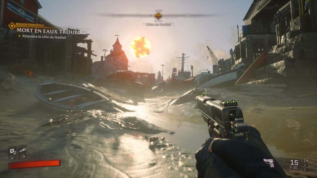 Redfall n’a pas que des défauts et s’il y a une chose qui est réussie c’est l’ambiance globale. Le titre est assez joli et contrairement à ce qui circule sur internet, les textures ne sont pas si catastrophiques. S’il est vrai que la modélisation de certains visages est assez bizarre, les effets lumineux et la musique réussissent à nous immerger dans ce monde. Sur Xbox Series X, je n’ai pas eu de ralentissements importants. Les 30 fps qui a fait autant débat sur internet est, pour moi, un argument inutiles. S’il est décevant, d’avoir eu des vidéos dans un format qui ne correspond pas au jeu final est dérangeant, le fait d’être en 30 fps ne l’est pas. Il ne s’agit pas d’un jeu de compétition.