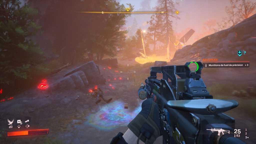 La jouabilité de Redfall est assez classique. Nous devons nous promener dans le monde ouvert afin de compléter les missions principales, mais rien ne nous empêche de nous égarer pour explorer un peu et récupérer des récompenses supplémentaires. La carte est d’une bonne grandeur et il est possible de déverrouiller des lieux emblématiques servant de point de téléportation. Avec une vue à la première personne, le titre propose une expérience similaire, peu importe la mission. Nous devons nous rendre à un endroit et éliminer la menace pour poursuivre. Le sentiment de toujours faire la même chose s’installe rapidement. Si nous rencontrons quelques fois des vampires qui peuvent surprendre au départ, on s’y habitue rapidement. Il s’agit que de simple PNJ avec un peu plus de vie et qui peuvent esquiver. Dans l’ensemble l’intelligence de nos ennemis est clairement en dessous des attentes. Même en utilisant le niveau de difficulté le plus élevé, j’ai rarement ressenti du stress. À savoir que si vous jouez à plusieurs, le niveau des ennemis s’adaptera. Cependant, il s’agit uniquement d’une jauge de vie plus grande.
