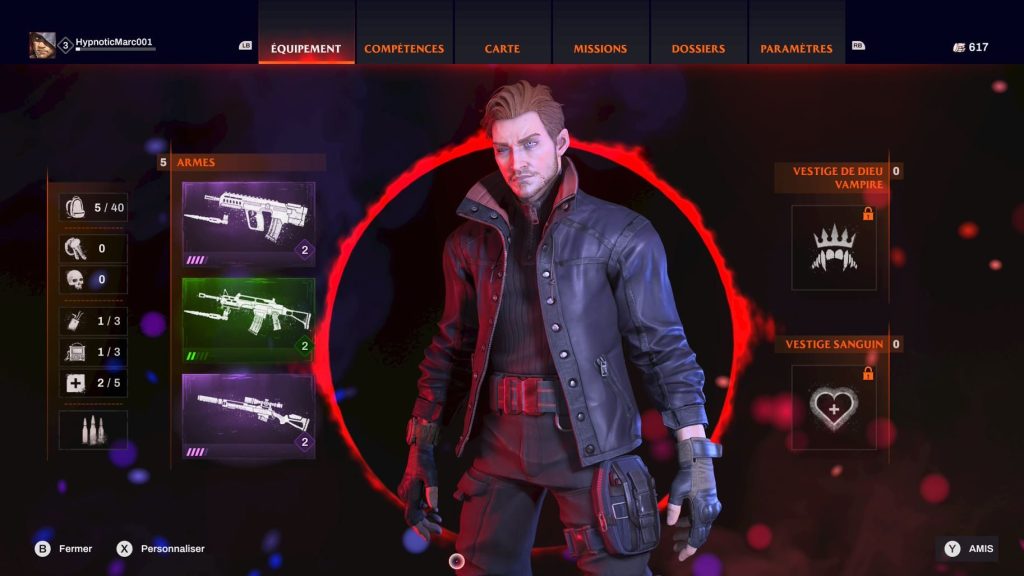 Redfall intègre des éléments de RPG, mais fait les mêmes erreurs que les autres expériences qui tentent la même chose récemment. Le joueur a l’opportunité de récupérer des armes et de l’équipement dans ses missions. Il y a un système de couleur et des statistiques associées à chaque pièce. Cependant, le tout ne sert strictement à rien et est plutôt anecdotique. On n’a aucunement besoin d’analyser pendant des heures pour le meilleur équipement, simplement utiliser celui avec le plus haut niveau. Vous allez aussi devoir vous habituer à aller dans votre inventaire, car celui-ci est limité et il faut désassembler de nombreux équipements pour faire de la place. Sans oublier qu’il n’est pas possible de faire une pause. Même dans les paramètres, le jeu ne se met pas en pause. Encore une fois, j’ai de la difficulté à comprendre les décisions des développeurs d’Arkane Austin.