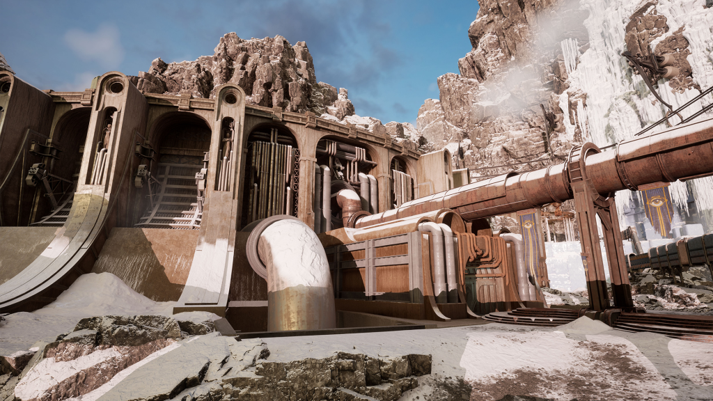 Dans l’ensemble, Firmament fait bon usage des forces de l’engin Unreal. Les environnements gigantesques sont superbes et détaillés, quoique répétitifs. Par contre, cela ne nuit pas là la crédibilité des lieux. Il y a un sentiment d’étrangeté et de mystère qui règne tant dans les sommets enneigés de Curieville que dans les vallées verdoyantes de St. Andrew. Cyan est reconnu pour ses univers narratifs riches et Firmament ne fait pas exception à la règle.