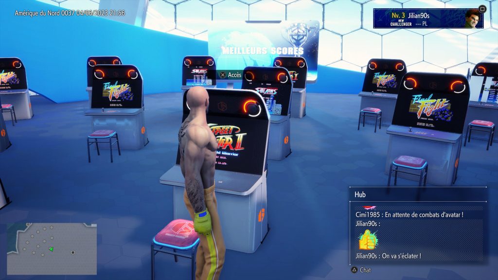 Par exemple, dans l’image ci-dessous, j’étais devant la borne d’arcade de Street Fighter II. C’est l’équivalent de retrouver Capcom Arcade Stadium dans Street Fighter 6. Finalement, vous pouvez aussi choisir le mode classé et vous comparer au reste de la planète.