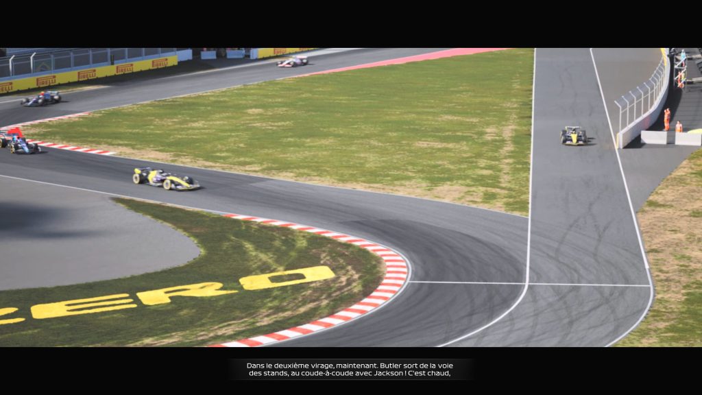 Ajouté en 2021, le mode histoire Braking Point était absent l’an dernier alors que les développeurs de Codemasters indiquaient vouloir faire une pause pour mieux revenir. L’heure du retour a sonné avec F1 2023 qui intègre à nouveau Braking Point. Cette fois-ci, les joueurs ont l’occasion de découvrir de nouveaux personnages, mais aussi d’incarner une nouvelle fois Aiden Jackson (le protagoniste original). Sans entrer dans les détails du scénario en lui-même pour éviter de divulguer quoi que ce soit, j’ai été agréablement surpris par la qualité globale de ce dernier. Les dialogues sont assez intéressants et on retrouve une drôle de situation comparable à la vraie vie alors que nous sommes pilotes pour l’écurie Konnersport Racing Team. Celle-ci est assez jeune dans le championnat et vous devez avoir comme coéquipier votre ancien rival Devon Butler. Celui-ci profite d’un petit avantage alors que c’est le fonds d’investissement de son père qui est propriétaire de l’équipe. Dans l’ensemble, c’est un mode de jeu plutôt complet malgré sa difficulté peu présente. Il ne faut pas s’attendre à un énorme défi alors que la plupart des paramètres sont bloqués pour ce mode.