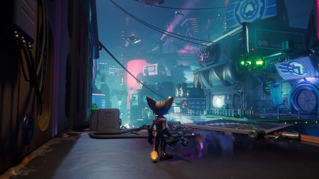 L’univers en entier est sympathique et la qualité graphique lui rend parfaitement hommage. Le design des personnages (avec leurs arcades sourcilières occupants environ, en moyenne, 38% de leur visage) combiné aux sublimes animations et à la performance des acteurs séduisent presque immédiatement tout en communiquant adéquatement les émotions, intentions et événements. Rift Apart, en d’autres mots, emprunte autant à Pixar qu’à la violence cartoonesque des années 80s.