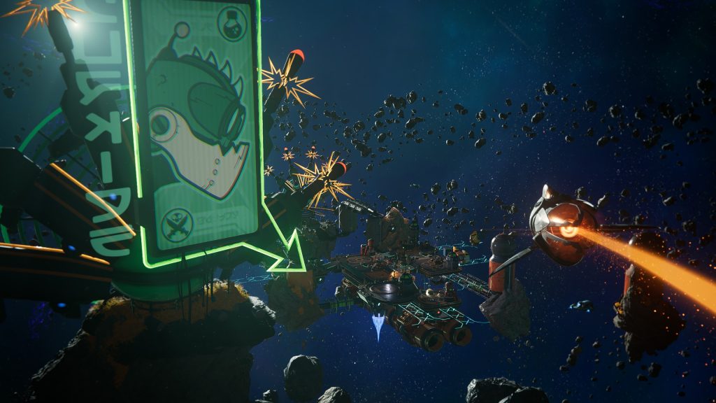 Au total, le joueur a accès à 20 armes assez distinctes (plus une arme de corps à corps) pouvant monter de niveau, selon la fréquence et l’efficacité d’utilisation. De plus, chaque membre de la vingtaine possède deux modes de tir et peut être amélioré à l’aide d’un arbre d’habileté afin de débloquer des attributs supplémentaires au prix d’une ressource rare (littéralement appelé Raritanium) demandant d’explorer les niveaux de fond en comble. En d’autres mots, la boucle de gameplay pousse le joueur à explorer pour augmenter le pouvoir de son arsenal qui en retour lui permet d’explorer plus. Simple et efficace, mais au combien satisfaisant.