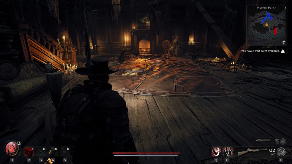 Contrairement à la série-phare de From Software, le joueur ne perd pas ses ressources lors d’une (inévitable) mort. Il est donc possible de continuer d’accumuler de l’expérience et des scraps, la monnaie du jeu, afin d’améliorer son personnage de plusieurs manières. Et le joueur a l’embarras du choix à ce niveau.